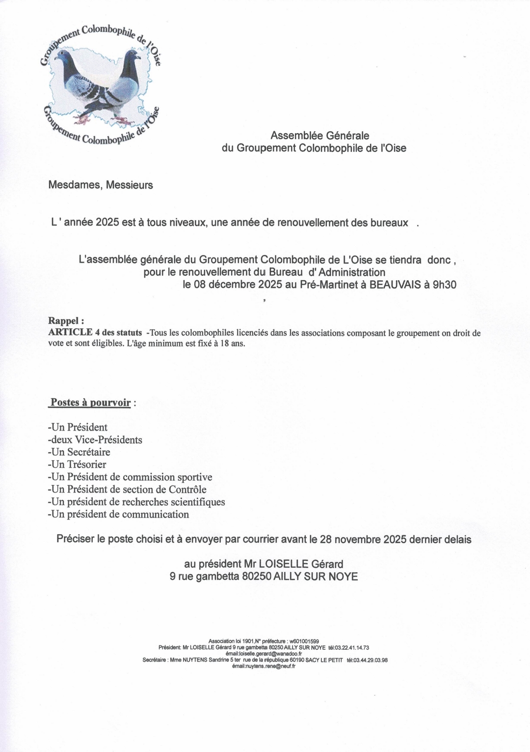 Comme vous le savez le 08 décembre 2025 nous allons renouveler le bureau du groupement de l'OISE